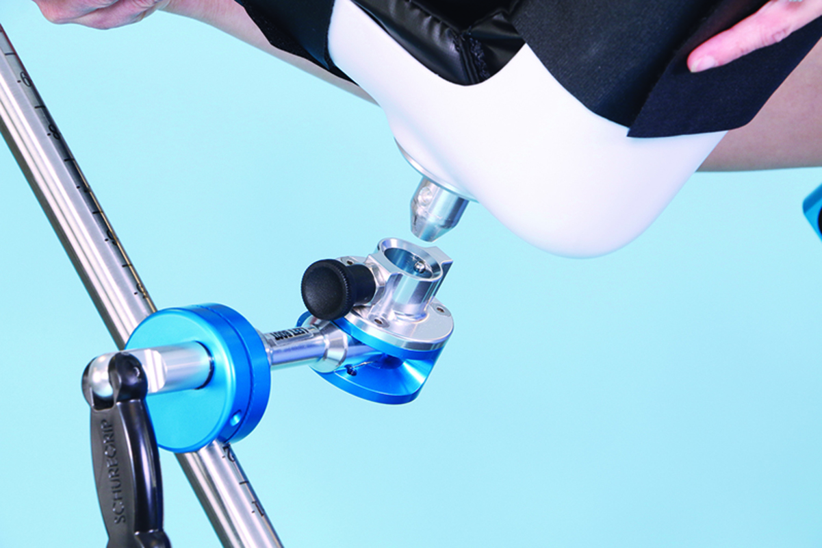 Se acopla instantáneamente al riel lateral de forma rápida y sencilla. La abrazadera SpringLoc, de nuevo diseño, fija los dispositivos para el posicionamiento del paciente y el equipo quirúrgico, con un poste de montaje plano en cualquier lugar, a lo largodel riel lateral de la mesa de operaciones.